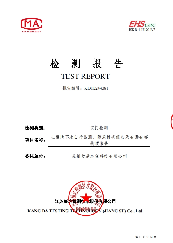 蘇州藍(lán)港環(huán)保科技有限公司檢測(cè)報(bào)告已公示,詳情請(qǐng)查...